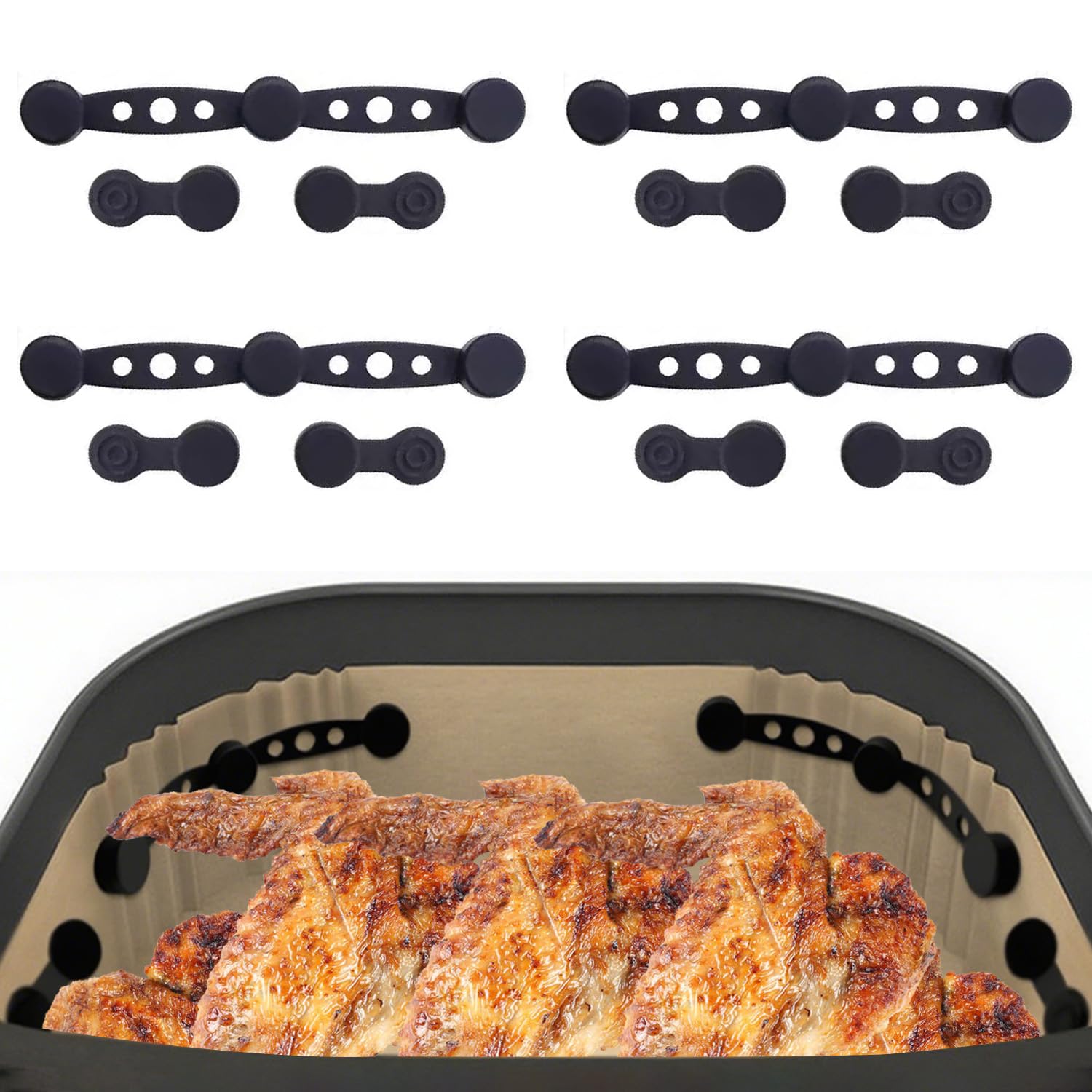 Packungsinhalt: Sie erhalten 4 Sets Silikonmagnete für Heißluftfritteusen, bestehend aus 4 länglichen Magneten und 8 kleinen runden Magneten. Diese Silikonmagnete für Heißluftfritteusen halten Backpapier sicher an seinem Platz und verhindern, dass es sich wellt und den Luftstrom behindert. Sie halten das Backpapier von den Heizelementen fern, sorgen für gleichmäßiges Garen und minimieren die Brandgefahr.