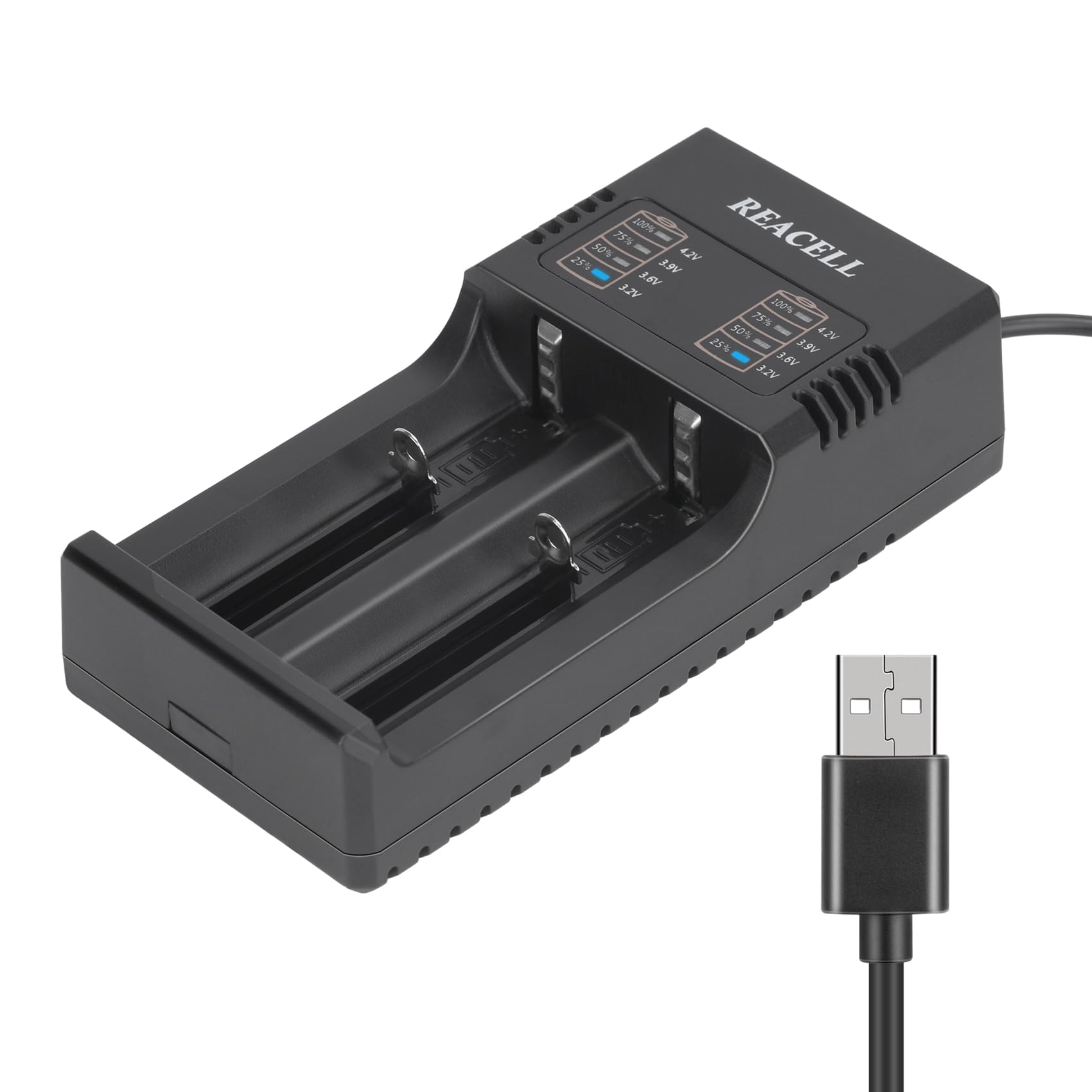 Universal-Ladegerät: REACELL 18650 Akku Ladegerät für 3,6 V/3,7 V Li-ion 10440, 14500, 14650, 17500, 17670, 18350, 18500, 18650, 20700, 21700, 22650, 25500, 26500, 26640 Akku.