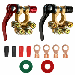 Hochwertige Batterieklemmen aus verzinntem Kupfer für eine zuverlässige Leitfähigkeit und Korrosionsbeständigkeit. Einfache Installation und 4-Wege-Design für vielseitige Anwendungen. Perfekt zum Ersetzen abgenutzter Klemmen. Lieferumfang: 2x Klemmen, 4x Terminal, Zubehör. Versandkostenfrei!