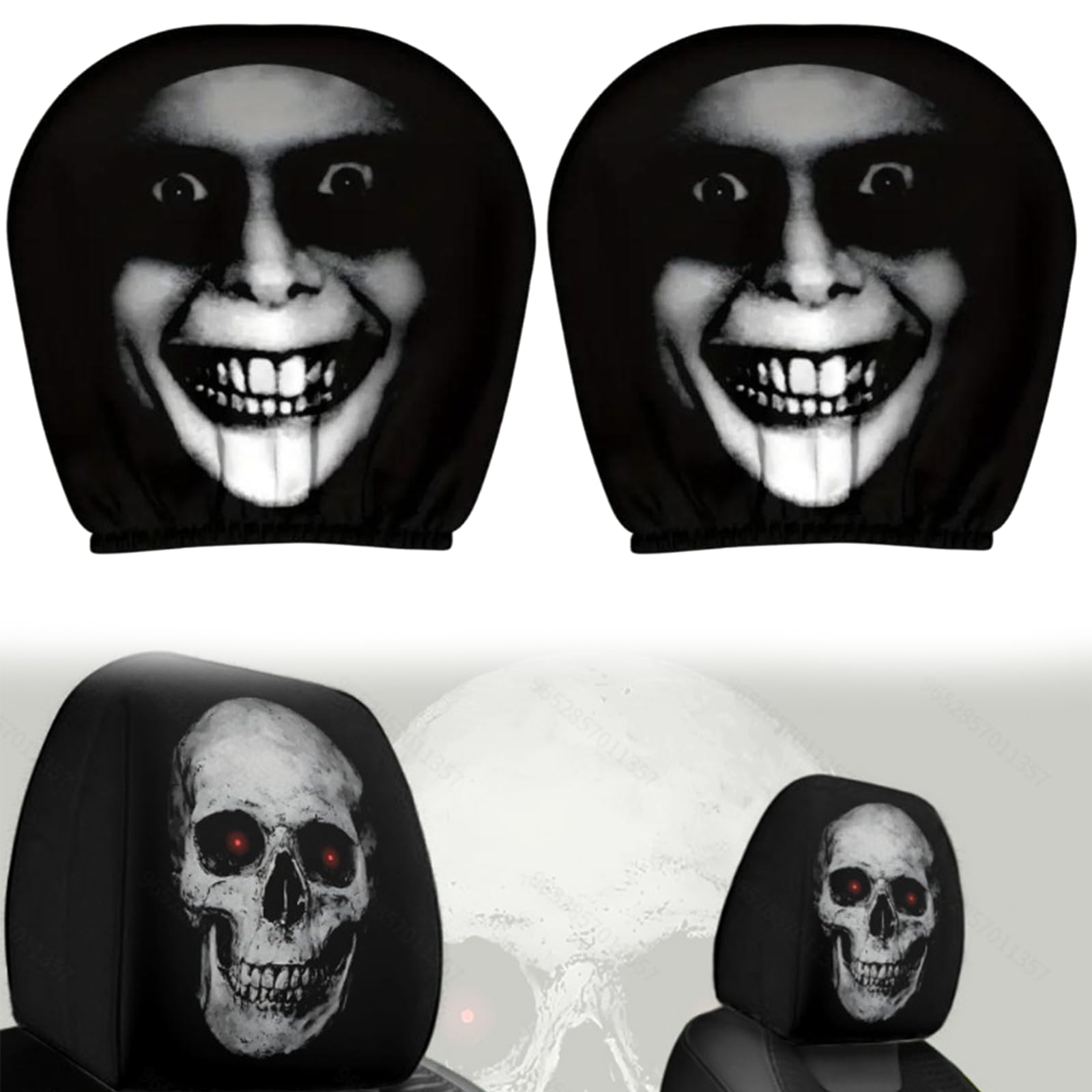 2 Stück Halloween-Kopfstützenbezüge, Funny Cartoon Car Headrest Covers Universal Fit Elastisch Atmungsaktiv Kopfstützenbezüge Lustige Halloween Weihnachtlicher Kopfstützenbezug Für Autositze (#01)