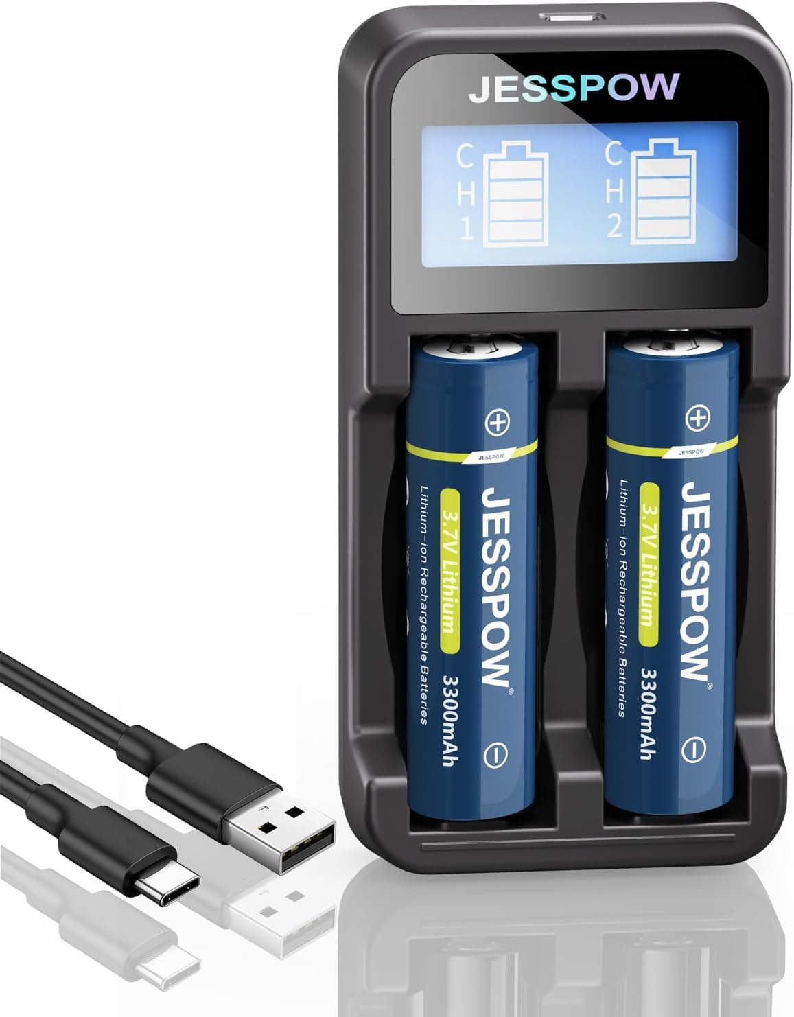 Akku Kompatibilität: Geeignet für Hochleistungsgeräte wie Stirnlampen, Taschenlampen, Kameras, Türklingeln, LED-Leuchten, Solarleuchten, Spielzeug, Ventilatoren, Ferngesteuerte Autos usw.
