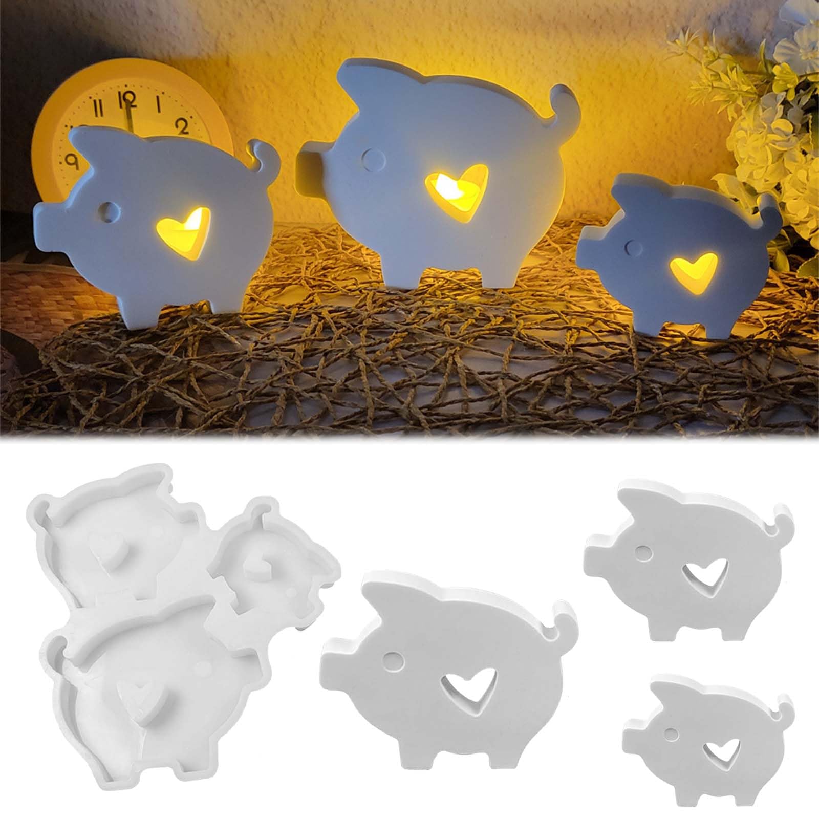 3 Stück Silikonform Schwein WISIRENT, Silikonformen Gießformen Schwein Silikon Gießform Herz, Glücksschwein Gießform Silikonform Schwein Kerzenhalter Gipsform Herz Zum Gießen für Bastelarbeiten, Seife