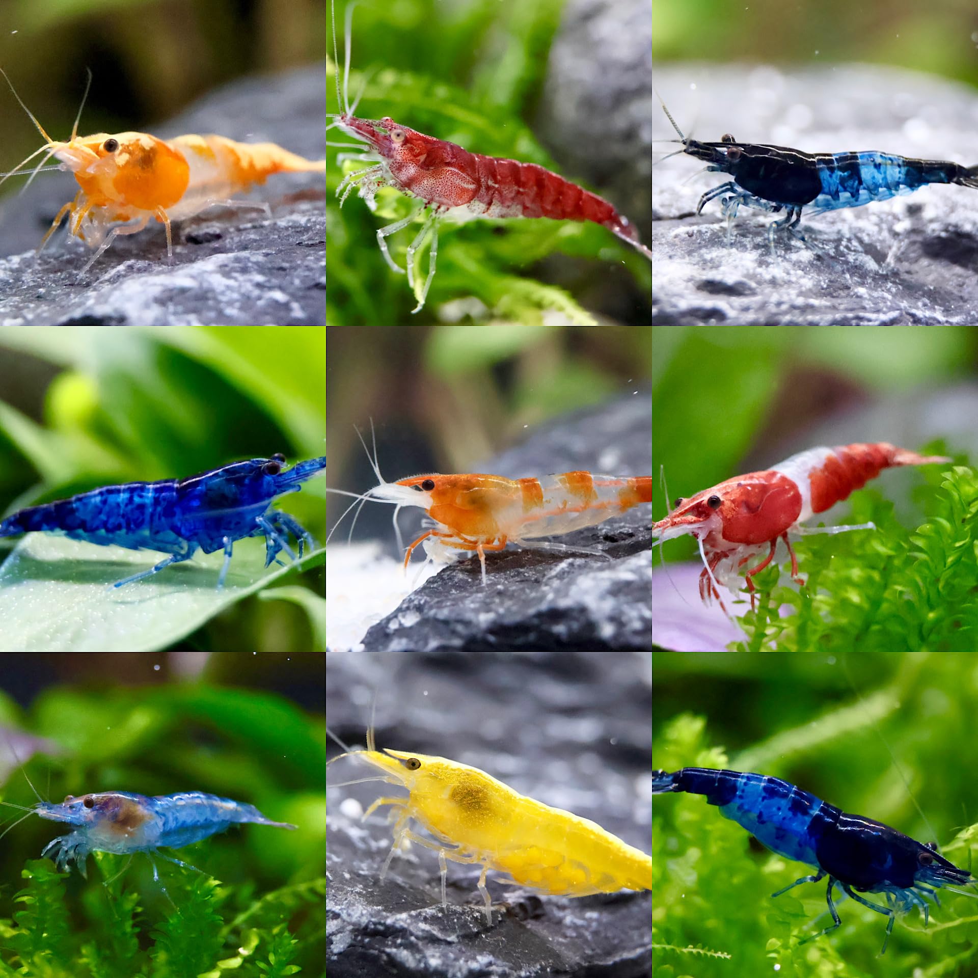 5 fabenfrohe Zwerggarnelen im Set um Farbe in dein Aquarium zu bringen.