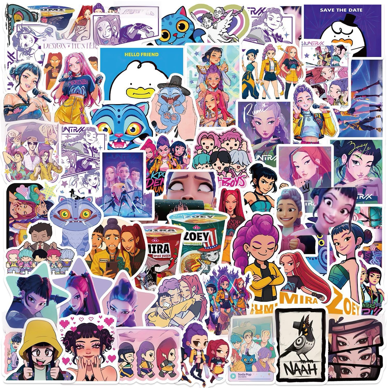 60 Sticker Set Anime Charakter Design, Wasserdichte Demon Movie Aufkleber für Erwachsene & Teens, Vinyl Dekor für Laptop, Skateboard, Handyhülle, Helm, Geschenk Kpop Inspired Demon Hunter Aufkleber