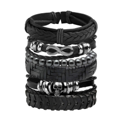 6PCS Punk Armband Herren Armbänder Set Schwarz lederarmband Gothic Geflochtene Armreif Leder gemischt
