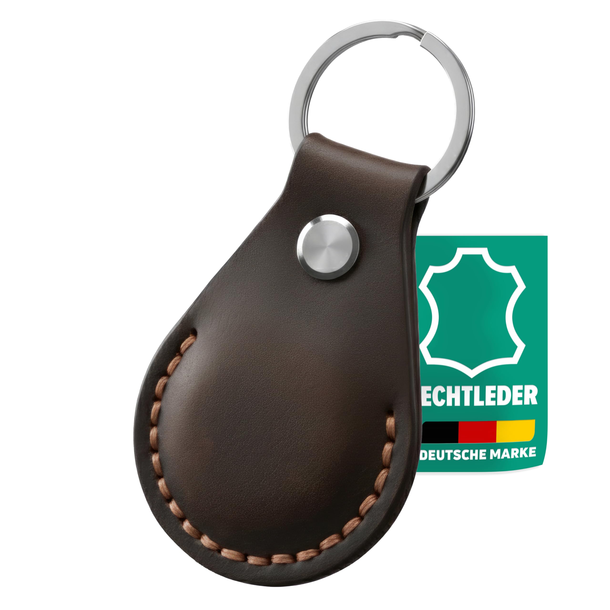 AirGear® Airtag Schlüsselanhänger LEDER ECHT, Anhänger aus Echtem Leder, Hülle aus Echtleder, kompatibel mit Apple Airtag (Coffee Brown)