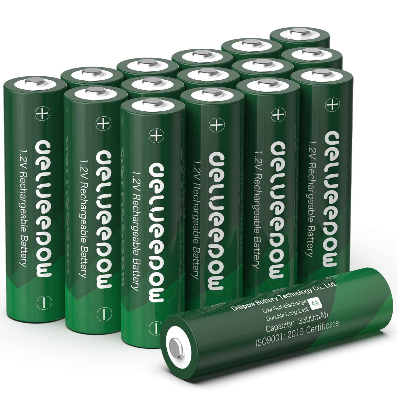 Akkus AA 3300mAh Batterien, 16 Stück, Wiederaufladbare Hohe Kapazität, 1200 Zyklen 1,2V 16-Pack Akkus Grün