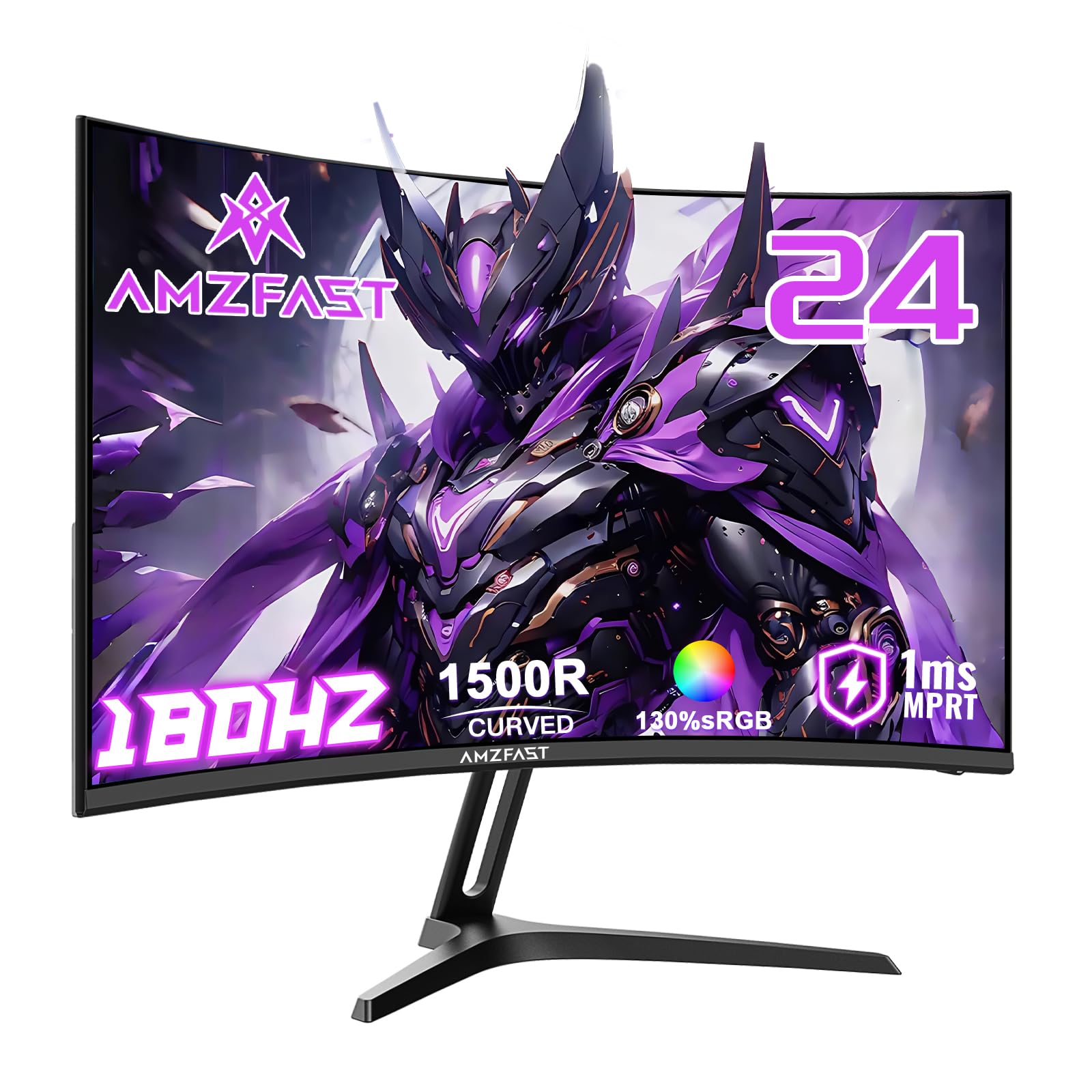 Amzfast Gaming Monitor Curved 24 Zoll - 180Hz, FHD 1920x1080, Blaulichtfilter, 1 ms MPRT, Adaptive Sync