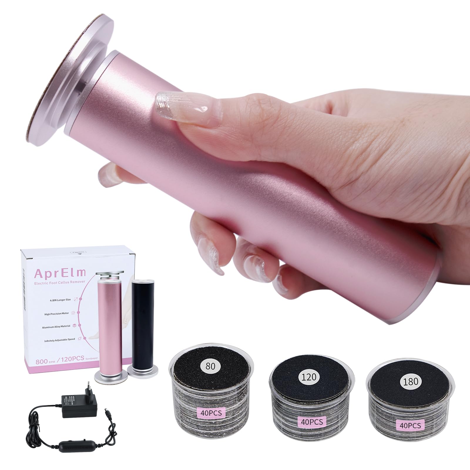 AprElm 12.2CM Längerer Elektrischer Hornhautentferner für Füße mit 120 Schleifpapier, aus Aluminium, stufenlose Drehzahlregelung – Professionelles Pediküre Gerät für zuverlässige Hornhautentfernung Rosa