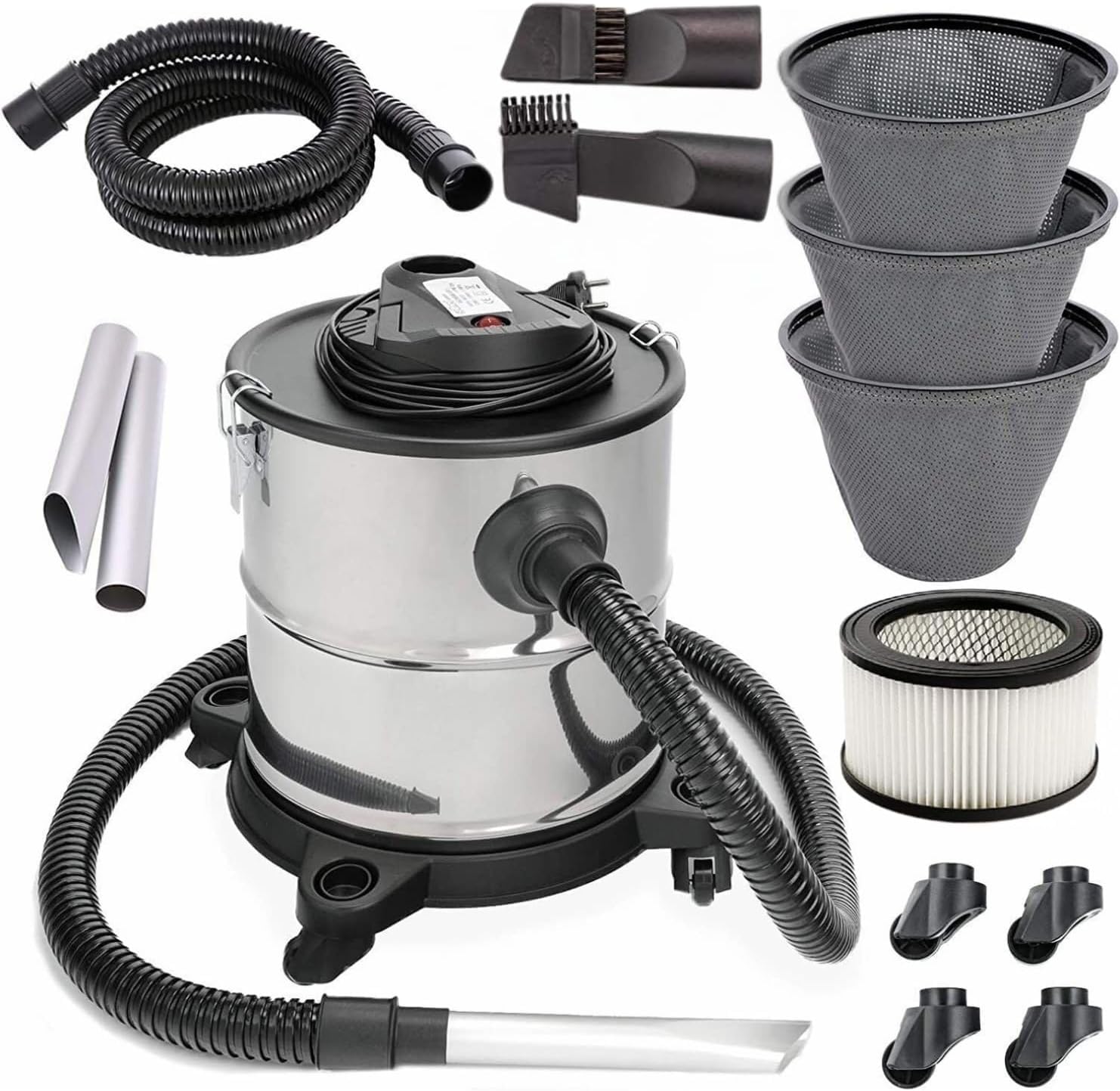 Aschesauger 20L 1650W Kaminsauger Staubsauger (Kabellänge ca. 4m) Inklusive HEPA Filter + Blasfunktion + DUAL Filter System + 3x Sackfilter, Antistatische Ableitkette, Aschesauger für Kamin SN121