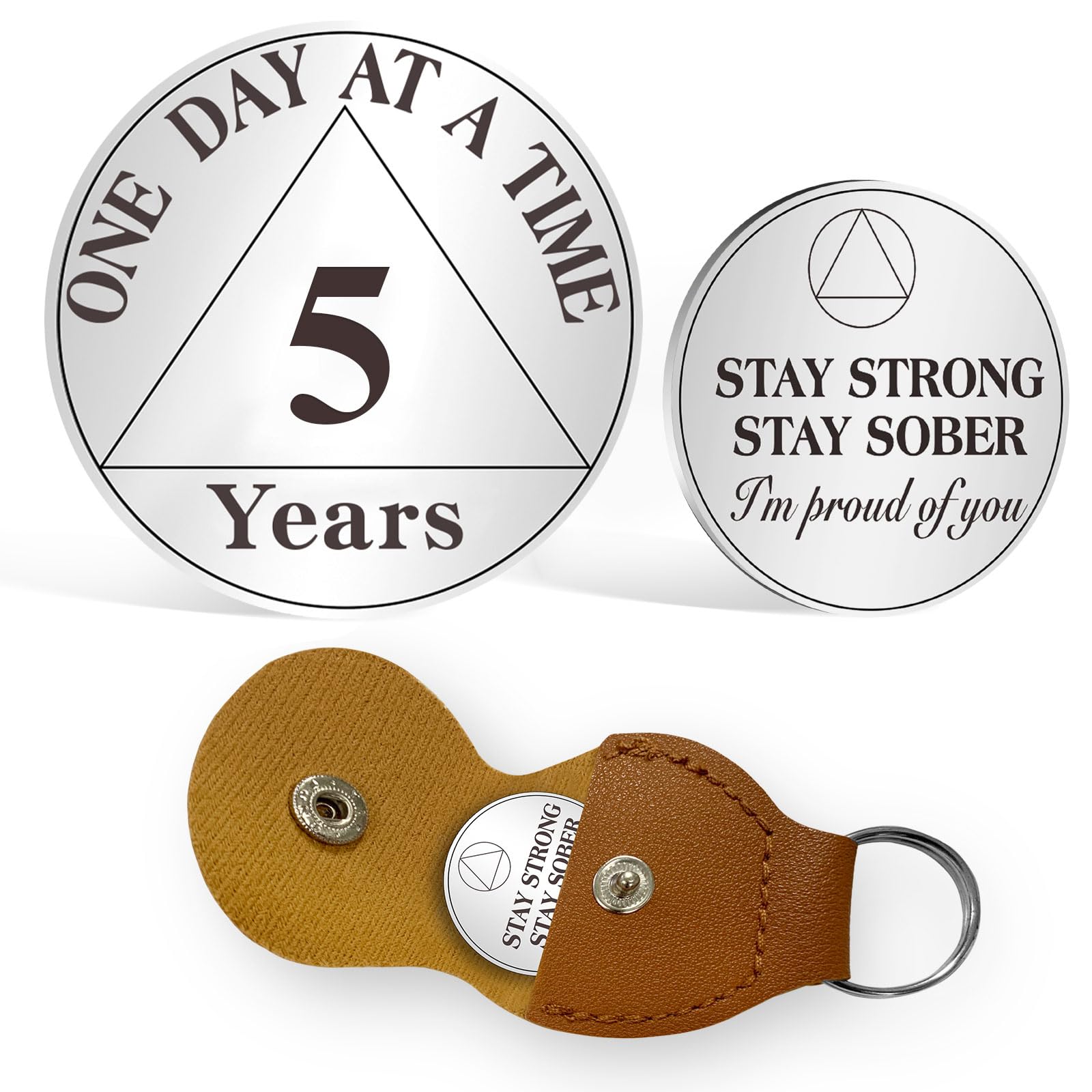 AtSKnSK 5 Jahr Nüchternheit Münze 1–10 Jahre Nüchternheits Münze AA Chip Medaillon für Damen Männer Genesungs Geschenk für Anonyme Alkoholiker Geschenke mit Schlüsselanhänger aus PU Leder (5 Jahre)