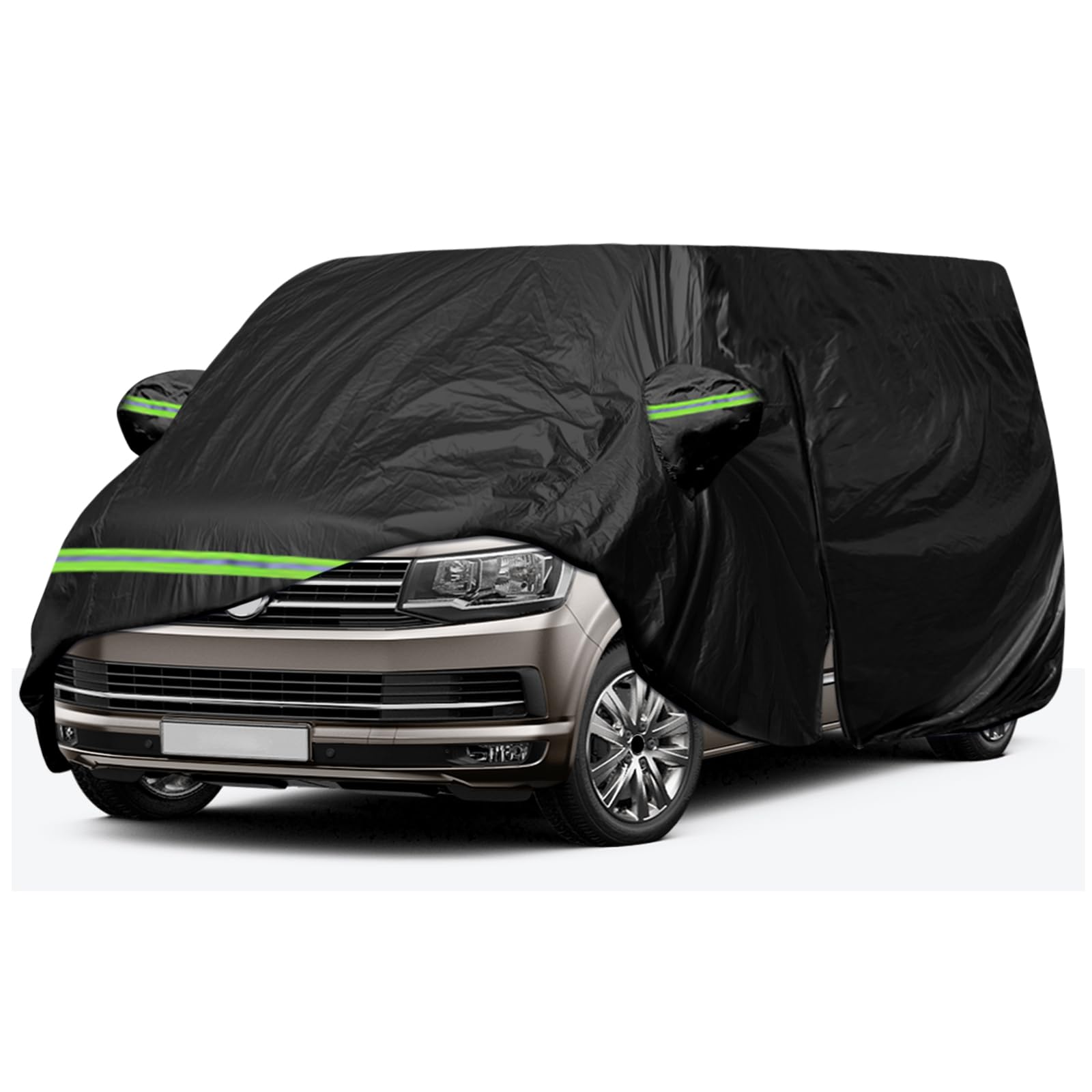 Autoabdeckung Wasserdicht Passend für VW T5 T6 LWB Transporter, Schwarz Vollgarage Autoplane mit Reißverschlusstür für Schnee, Regen, Allwetterschutz Schwarz Passend für T5 T6 Länge 490 bis 530 cm