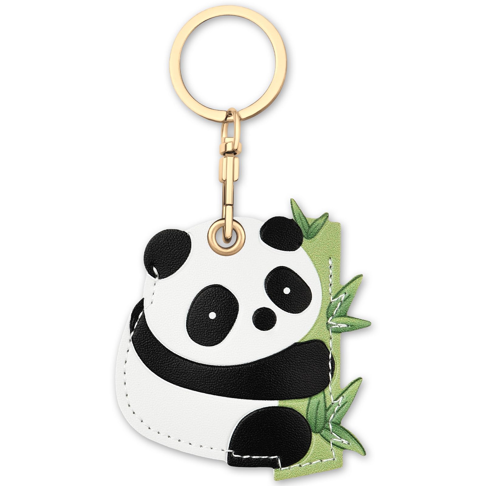 AXFEE AirTag Schutzhülle, Leder Keyring Schutzhülle Kompatibel mit AirTags, Leder Keyring für AirTag, Mini AirTags Case, Leder Hülle Schlüsselanhänger Case, Cover mit Schlüsselanhänger Panda #2 Tiere