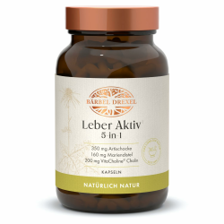 BÄRBEL DREXEL Leber Aktiv 5-in-1 Kapseln mit Cholin, Mariendistel, Löwenzahn, Artischocke, Piperin, Zink, Vitamin E, Selen (60 Stk) Leber Kapseln Naturheilkunde Bitterstoffe