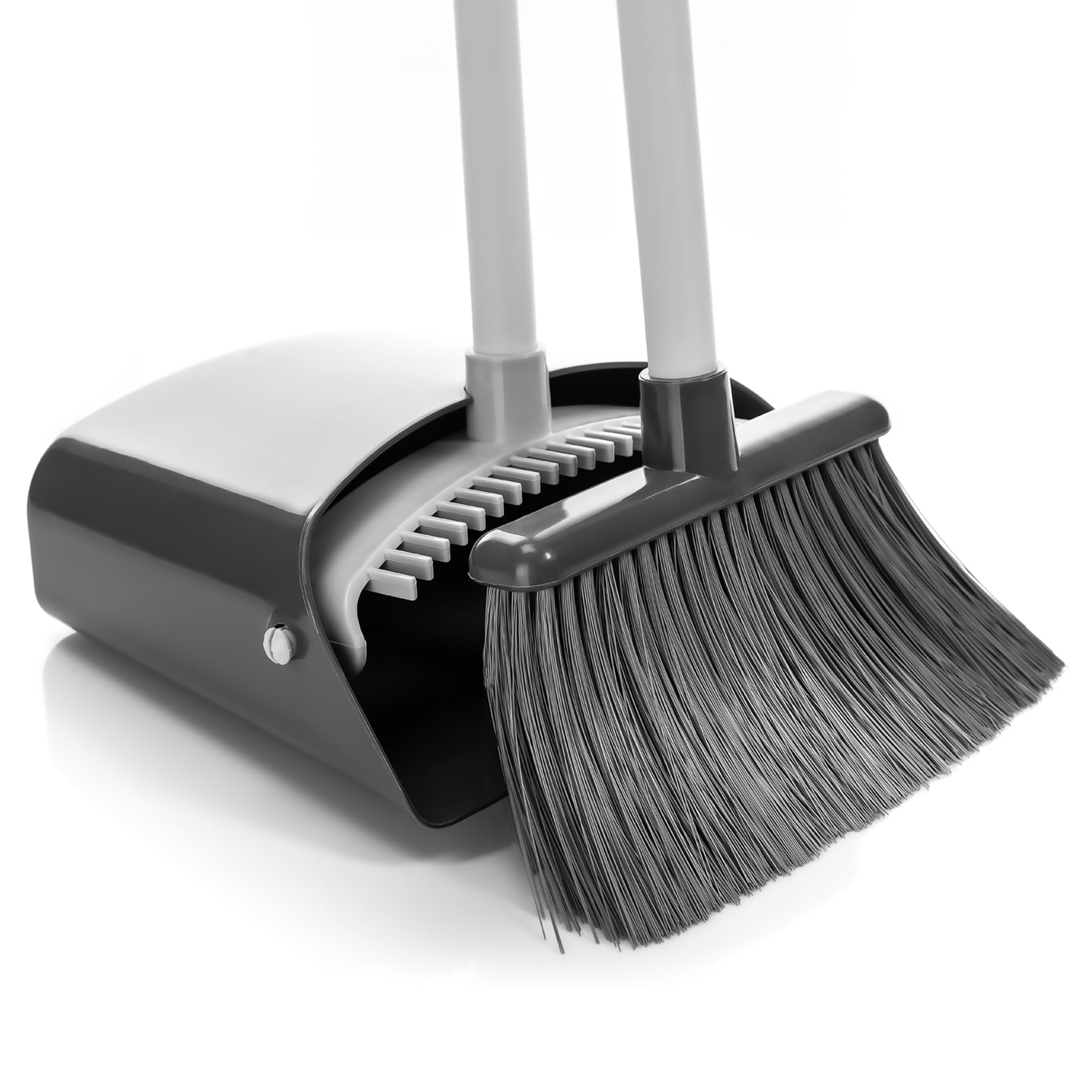 BigDean Kehrschaufel Set mit Besen in Grau – Kehrgarnitur für effektive Bodenreinigung – Besen mit Stiel 90 Grad drehbar 1