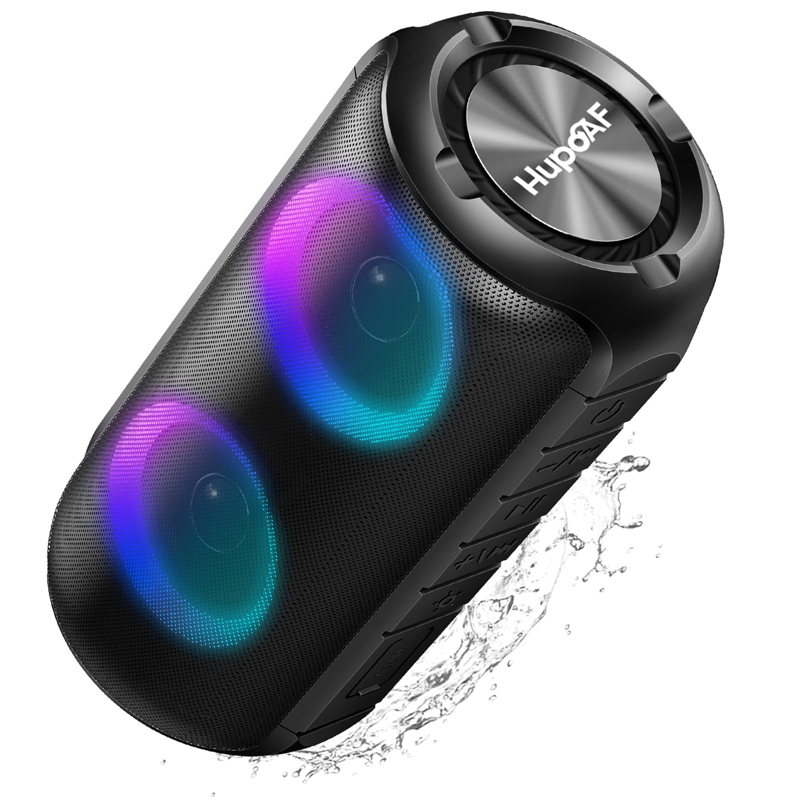 Bluetooth Lautsprecher mit Licht, Neues Musikbox Tragbarer Bluetooth Box mit 52mm Durchmesser Dual Lautsprecher, Tiefer Bass, IPX7 Wasserdicht Outdoor Speaker für Reisen/Party/Strand【2025】 Dunkelschwarz