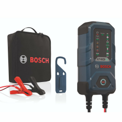 Lieferumfang: 1x Bosch C40-Li Batterieladegerät mit Mobilhaken, Netzkabel, Ladekabel mit Ringösen und abnehmbaren Klemmen, Bedienungsanleitung und einer praktischen Transporttasche