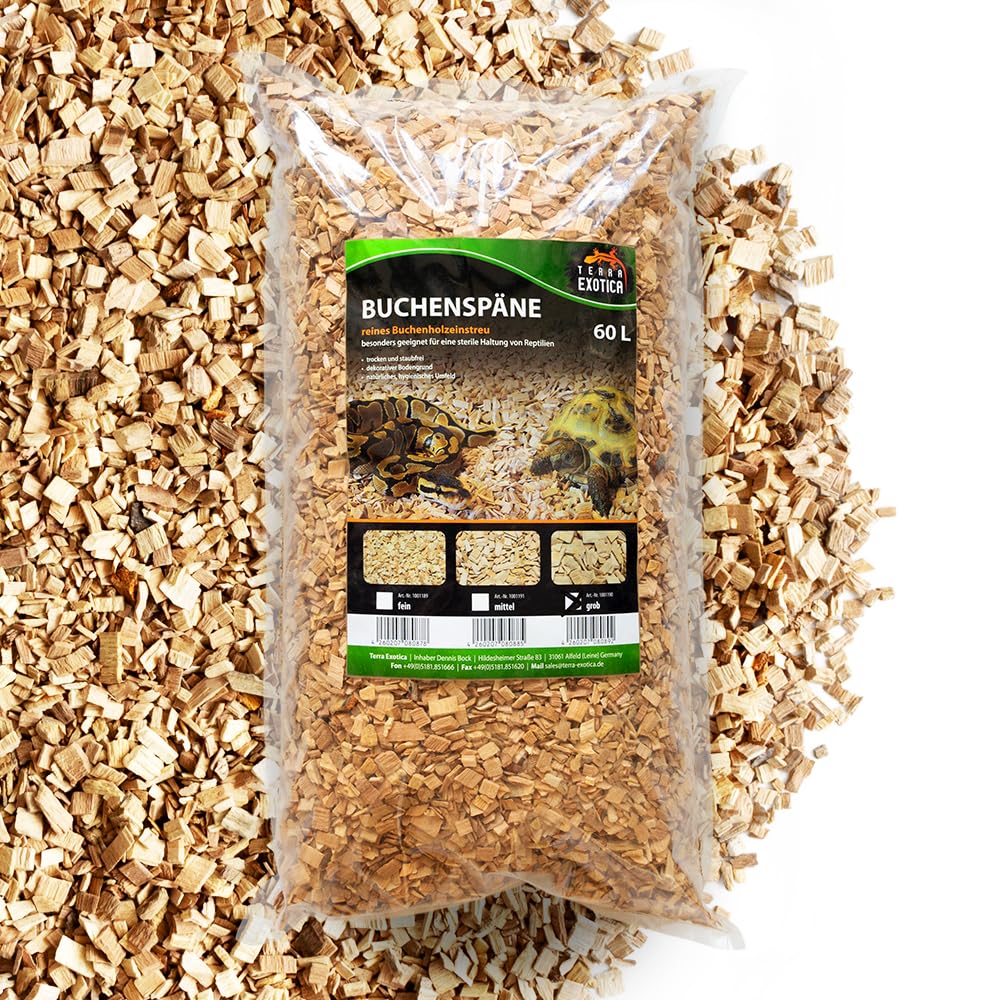 Buchenspäne grob als Einstreu für Ihr Terrarium in 10, 20 oder 60 Liter - Natürliches Buchenspan geeignet für Reptilien, Vögel und Kleinsäuger (60 Liter)