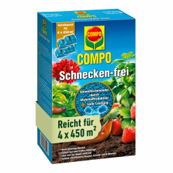 Effektiv gegen Schnecken: Wirkt zuverlĂ€ssig und schnell gegen Nacktschnecken, hohe Reichweite und Wirksamkeit dank starker Lockwirkung. Vielseitig einsetzbar: Optimal fĂŒr die Anwendung in GemĂŒse- oder Blumenbeeten im Garten, auf der Terrasse oder im GewĂ€chshaus. Extreme Regenfestigkeit: Granulat löst sich bei Feuchtigkeit nicht auf, sehr gute Schimmel- und Witterungsfestigkeit. Einfache Anwendung: Schneckenkorn breitflĂ€chig ausstreuen, dank blauer FĂ€rbung lassen sich die Körner besonders gleichmĂ€Ăig verteilen, fĂŒr optimalen Erfolg abends ausbringen. Lieferumfang: 1 COMPO Schnecken-frei, Streugranulat, 4x225 g fĂŒr 4x450 mÂČ, Art.-Nr. 20655. Wirkstoff: Metaldehyd 2.5 %