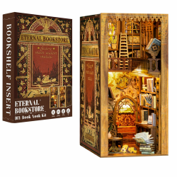 CUTEBEE Book Nook DIY Kit – DIY Puppenhäuser Miniatur Haus Kit mit Möbeln und LED-Licht, 3D Puzzle Buchstützen aus Holz, Modellbausätze für Erwachsene zum Bauen (Eternal Bookstore)