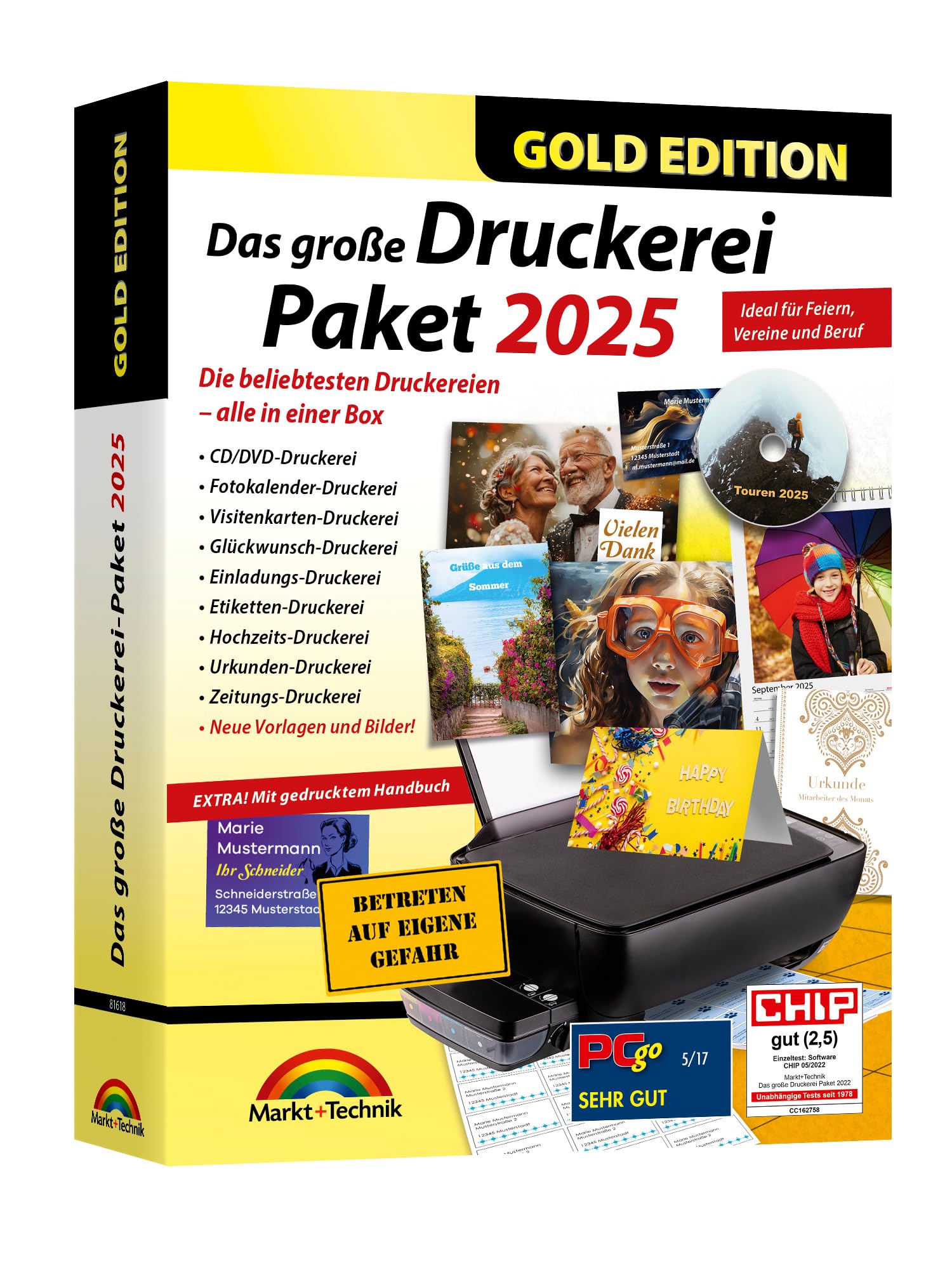 Das große Druckerei Paket 2025 - Einladungen, Glückwunsch Karten, Etiketten, CD-DVD Labels, Visitenkarten für Windows 11, 10, 8.1, 7