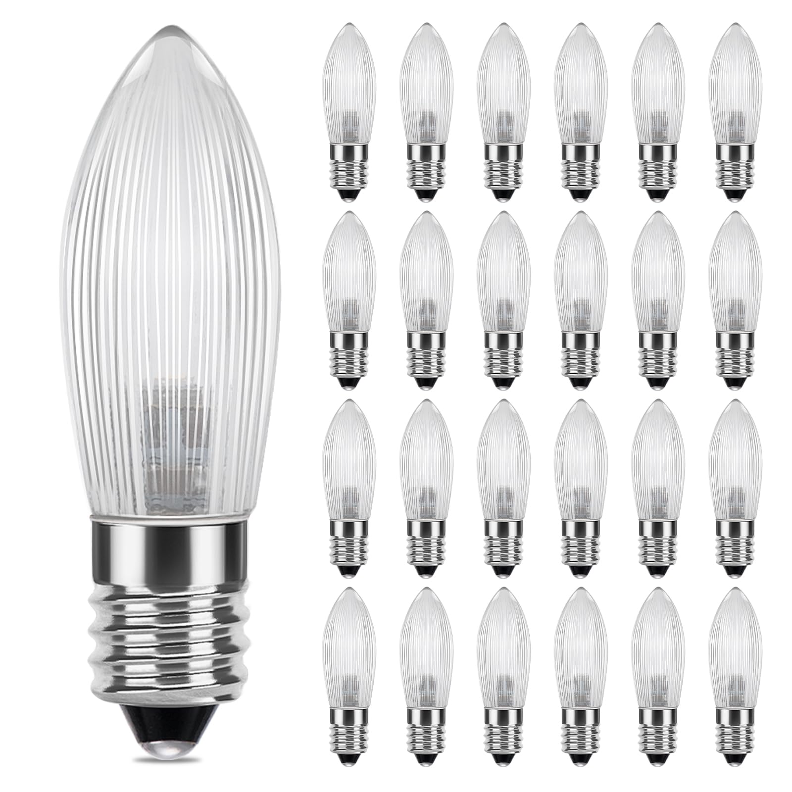DiCUNO E10 LED Riffelkerze, 25x Spitzkerze für Schwibbogen, LED Ersatzbirne 0.2W ersatz 1W Topkerze, warmweiß 2300K, 5-55V, für Lichterbogen, Adventsleuchter, Lichterkette