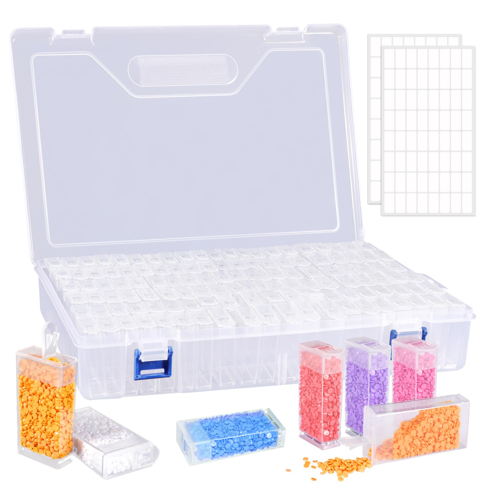 DIDUDE Diamond Painting Aufbewahrungsbox,120 Raster Kunststoff Dosen Diamant Stickerei Box,Kunststoff Perlen Nagel Kunst Aufbewahrung Behälter Malerei Zubehör DIY Basteln Schmuck Strass mit Stickers