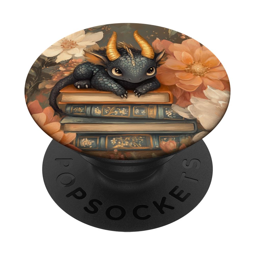 Dragon Books Cottagecore Bookworm Flowerful Bookish PopSockets Klebender PopGrip Adhesive PopGrip