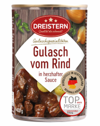 FRISCHE ZUTATEN - Unsere köstliche SpezialitĂ€t wird aus frischen, sorgfĂ€ltig ausgewĂ€hlten Zutaten wie zartem Rindfleisch in pikant gewĂŒrzter Bratensauce zubereitet. Hergestellt in Deutschland - fĂŒr einen natĂŒrlichen Geschmack. SCHNELL & EINFACH ZUBEREITET - Ob im Kochtopf oder in der Mikrowelle - dieses herzhafte Fleischgericht ist in wenigen Minuten servierfertig. Vielseitiger Genuss - Unser saftiges Rindergulasch vereint ein traditionelles Rezept mit modernem Genuss. Schnell erwĂ€rmt & vielseitig kombinierbar - fĂŒr herzhaften Genuss ohne Aufwand! HALTBAR & NAHRHAFT - Das Dreistern Rindergulasch ĂŒberzeugt durch schonende Zubereitung fĂŒr lange Haltbarkeit ohne KĂŒhlung. GenieĂen Sie tĂ€glich schmackhafte Gerichte! DREISTERN QUALITĂT - Seit vier Generationen mit Herz & Hand produziert. Authentische deutsche KĂŒche, die traditionell & modern zugleich ist - fĂŒr den besten Geschmack & höchste QualitĂ€t.