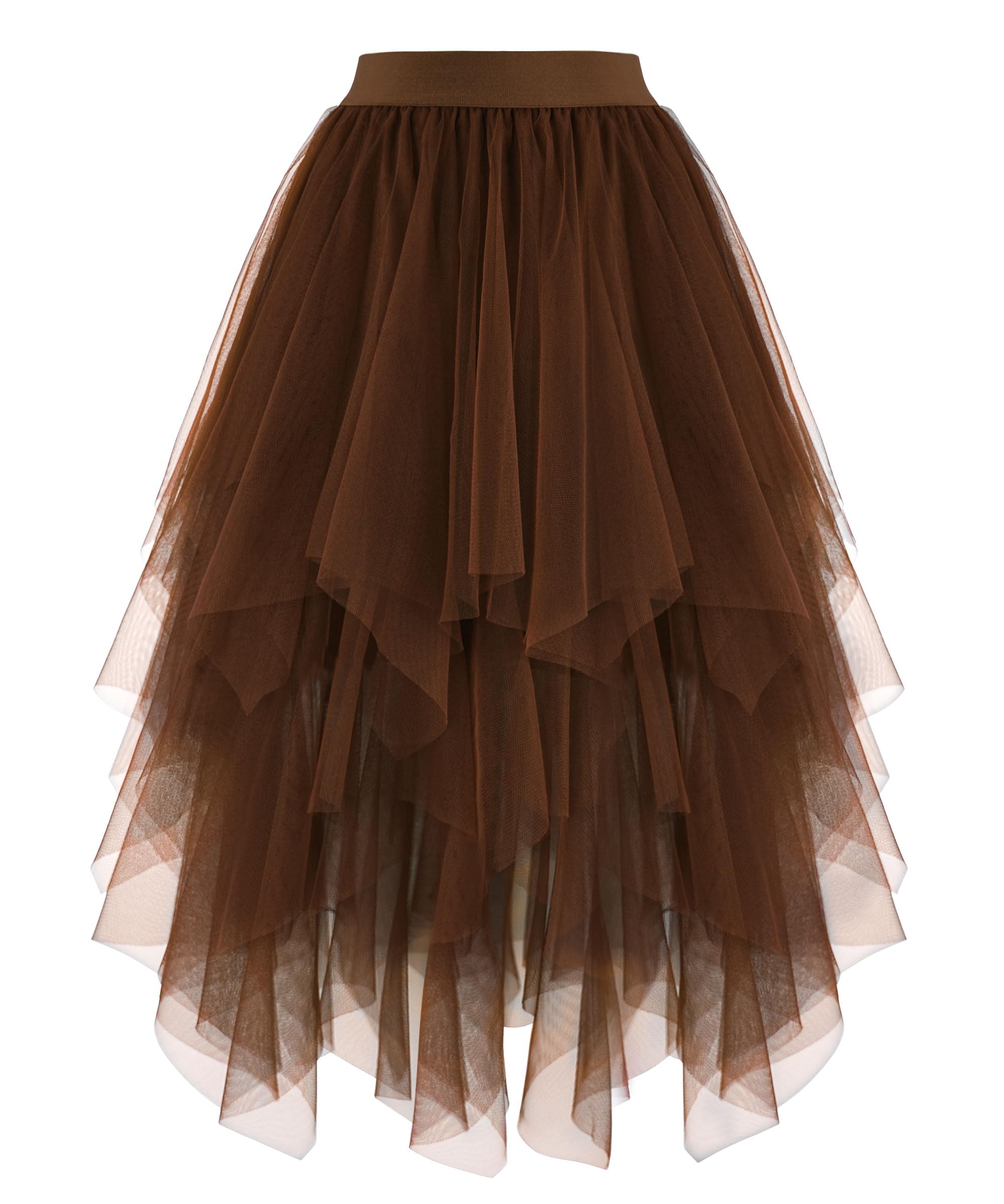 Dressever Damen Unregelmäßiger Tüllrock Mehrschichtiger Mesh Faltenrock A-Linie Hoher Taillierter Rock Ballett Tutu Abschlussball Party Karneval Party Rock L Braun