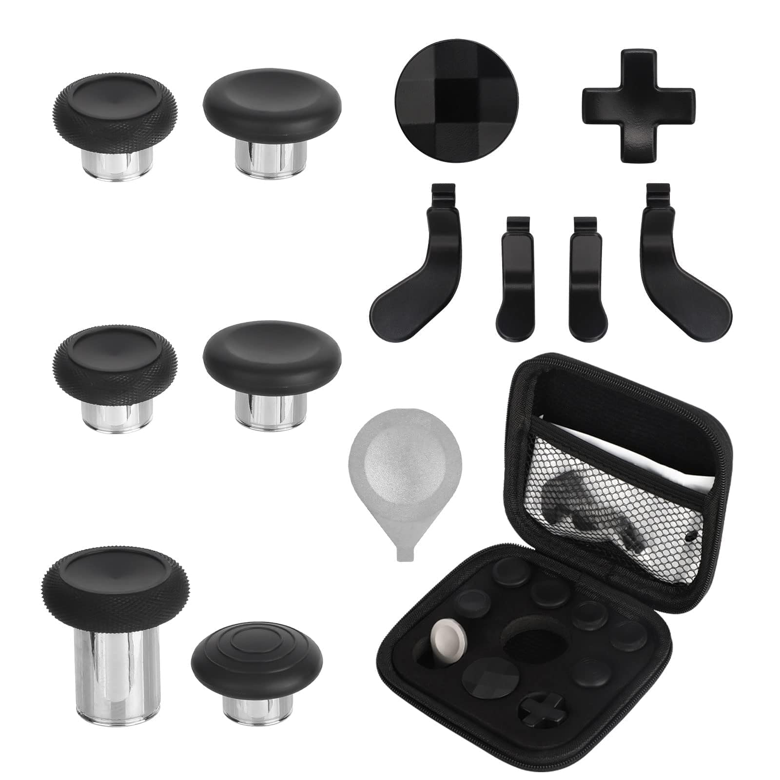 Lieferumfang: Das Paket enthält ein komplettes Set mit 6 metallischen Thumbsticks, 4 Paddles, 2 Steuerkreuzen und 1 silbernem Einstellwerkzeug – alles, was Sie für ein maximales Spielerlebnis brauchen. Enthält außerdem einen Aufbewahrungsbehälter für Thumbsticks zur täglichen Aufbewahrung