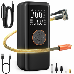 【Überlegene Leistung】Unser tragbarer Kompressor zum Aufpumpen von Reifen ist mit einem Hochleistungs-Chip ausgestattet, der 150 PSI Luftdruck bietet. In weniger als 1 Minute kann er den Reifendruck schnell von 29 PSI auf 36 PSI erhöhen. Mit blitzschneller Geschwindigkeit bewältigt diese elektrische Luftpumpe leicht verschiedene Herausforderungen beim Aufpumpen.