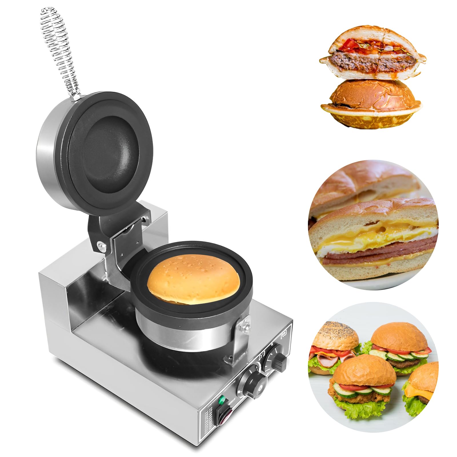 Elektrische UFO-Burger-Presse, Kommerzielle Antihaftbeschichtete Panini-Presse für Hamburger, 50°C - 300°C Temperaturregelung, 0-5 Minuten Zeiteinstellung für den gewerblichen Heimgebrauch