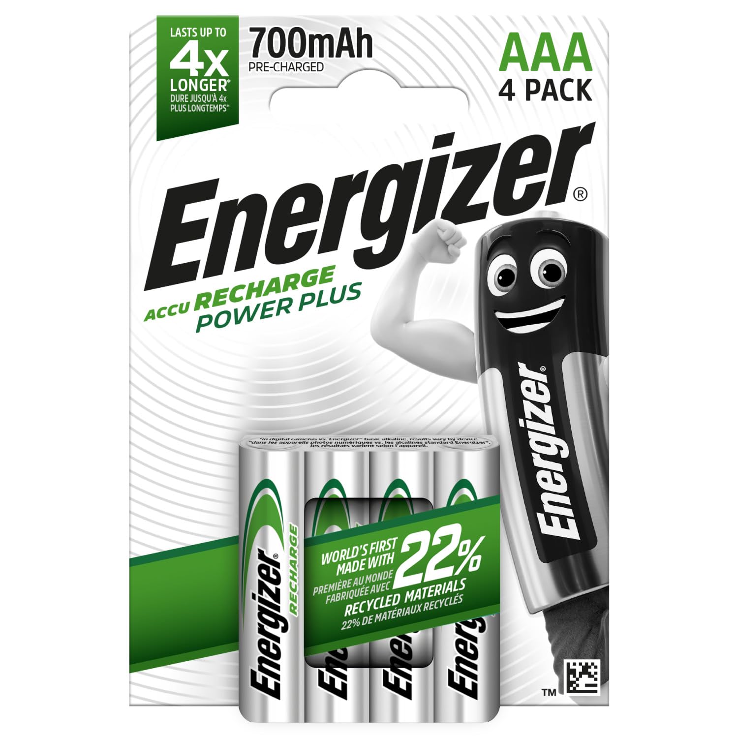 Energizer Recharge Power Plus - AAA Akkus (4 Stück) -700 mAh NiMH Batterien - Bis zu 5 Jahre nutzbare Batterielebensdauer - Bis zu 1000 mal wiederaufladbar - 100% plastikfreie Recycelbar Verpackung
