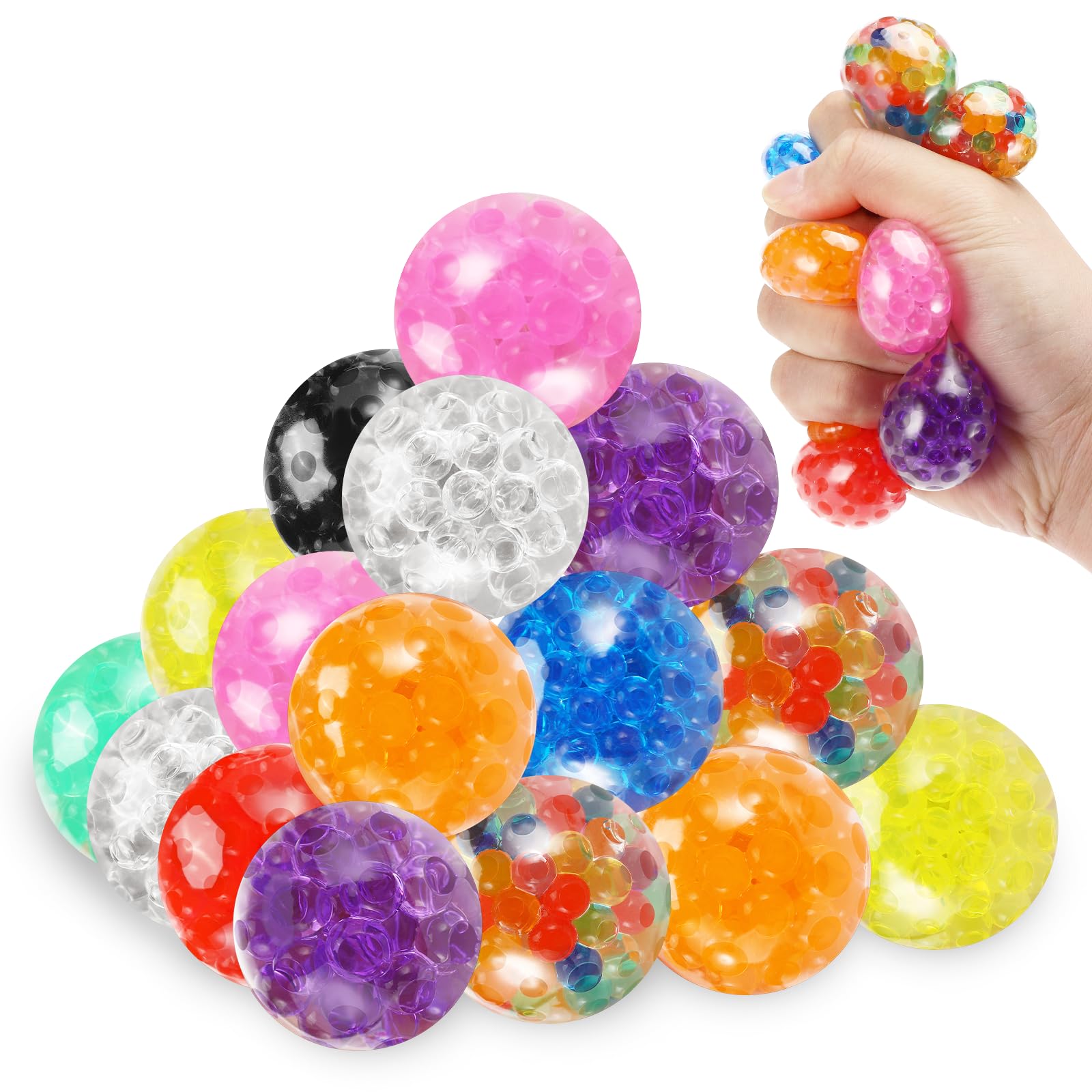 Farerkass 24 Stück Anti Stress Spielzeug Bälle, Mini Mesh Stressbälle Antistressball Kinder Set, Squishy Balls mit Wasserperlen, Squeeze Ball für Angst abbauen und Beruhigung Geburtstag Geschenke