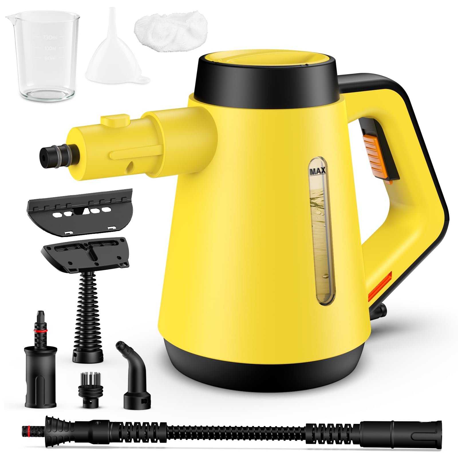 Fippesax Handdampfreiniger, 400 ml Druck-Mehrzweckdampfreiniger mit 9-teiligem Zubehör, chemikalienfreier Dampfreiniger für den Heimgebrauch, Reinigung von Böden, Fliesen, Fenstern, Sofas (Gelb)