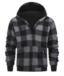 Fleecejacke Herren Sweatjacke Männer mit Kapuze Warme Kapuzenjacke Gefüttert Winterjacke Kariertes Hoodie mit ReißVerschluss 0569-Grau XL