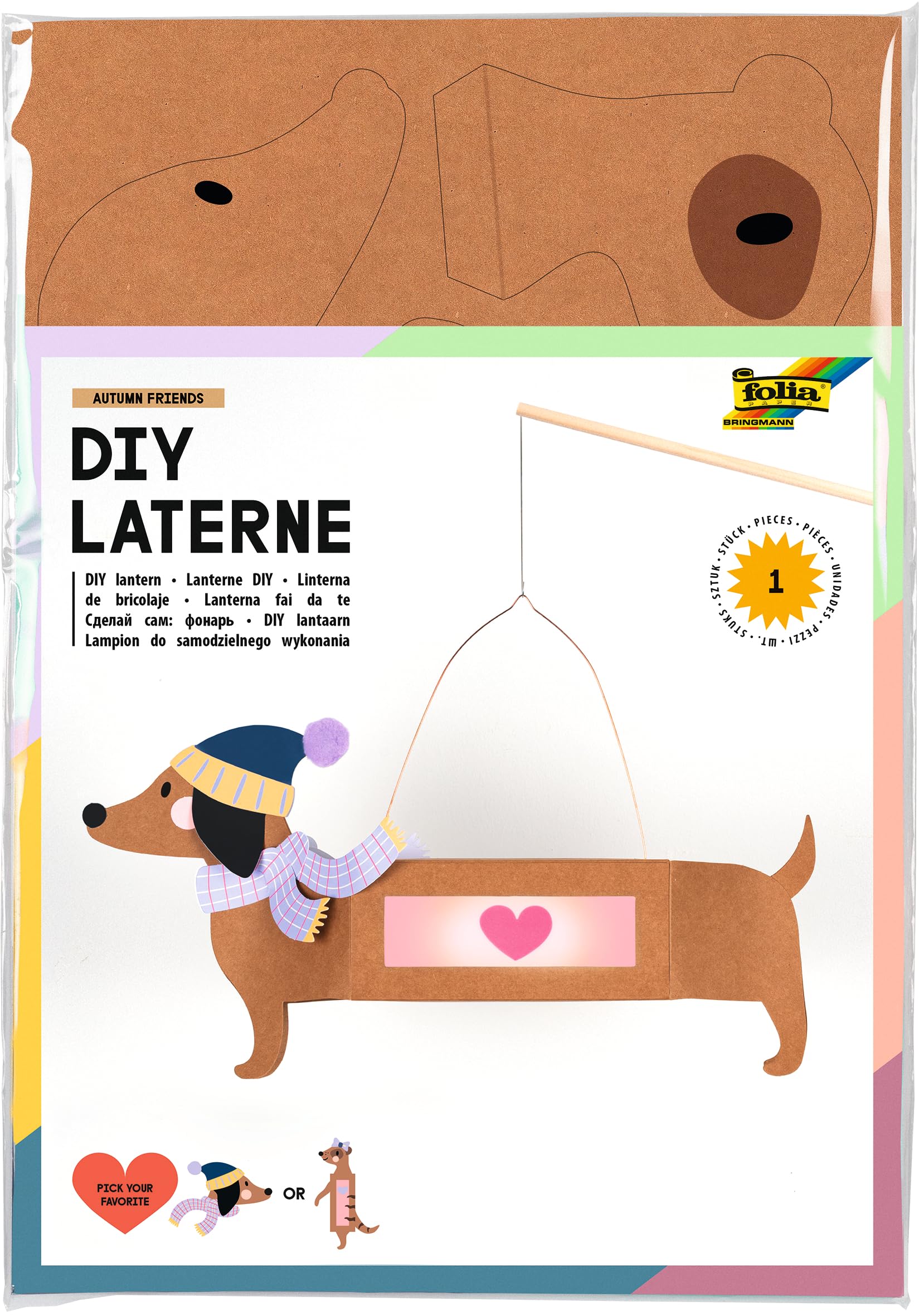 folia 94203 - Laternen Bastelset AUTUMN FRIENDS, ca. 10 x 23 x 33 cm - Bastelmaterial für eine Laterne, gestaltbar als Dackel oder Erdmännchen, Natur Braun