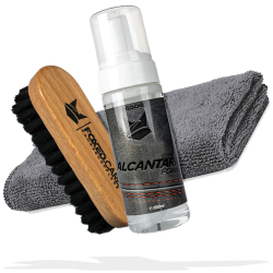 Foxed Care - Alcantara Bundle 3-teilig - Alcantara Foam Alcantarareiniger 150ml + Surface Brush Leder- & Textilbürste + Mikrofasertuch 320GSM - Geeignet für alle Arten von Alcantara