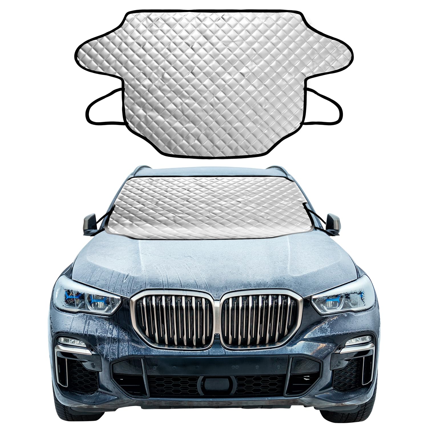 Schutz vor Eis und Frost: Die Abdeckung verhindert im Winter die Bildung von Eis und Frost auf der Windschutzscheibe. Kein lästiges Eiskratzen mehr, wodurch Sie wertvolle Zeit und Energie sparen. Sonnenschutz und Hitzeschutz im Sommer: Dank der reflektierenden Oberfläche schützt die Abdeckung Ihr Fahrzeug vor intensiver Sonneneinstrahlung und hält den Innenraum angenehm kühl, ideal für heiße Sommertage. Robuste 4-Lagen-Konstruktion: Gefertigt aus strapazierfähigem Verbundmaterial, bietet die Abdeckung optimalen Schutz vor extremen Wetterbedingungen, Staub, Schmutz und Laub – langlebig und zuverlässig in jeder Jahreszeit. Universelle Passform: Mit einer großzügigen Größe von 195 x 125 cm eignet sich die Abdeckung für fast alle Fahrzeugtypen, einschließlich PKWs, SUVs und Kombis, und sorgt so für maximale Flexibilität. Einfache Handhabung und kompakte Lagerung: Die Abdeckung ist leicht anzubringen, schnell zu entfernen und lässt sich platzsparend zusammenfalten, was besonders praktisch für die tägliche Nutzung ist.