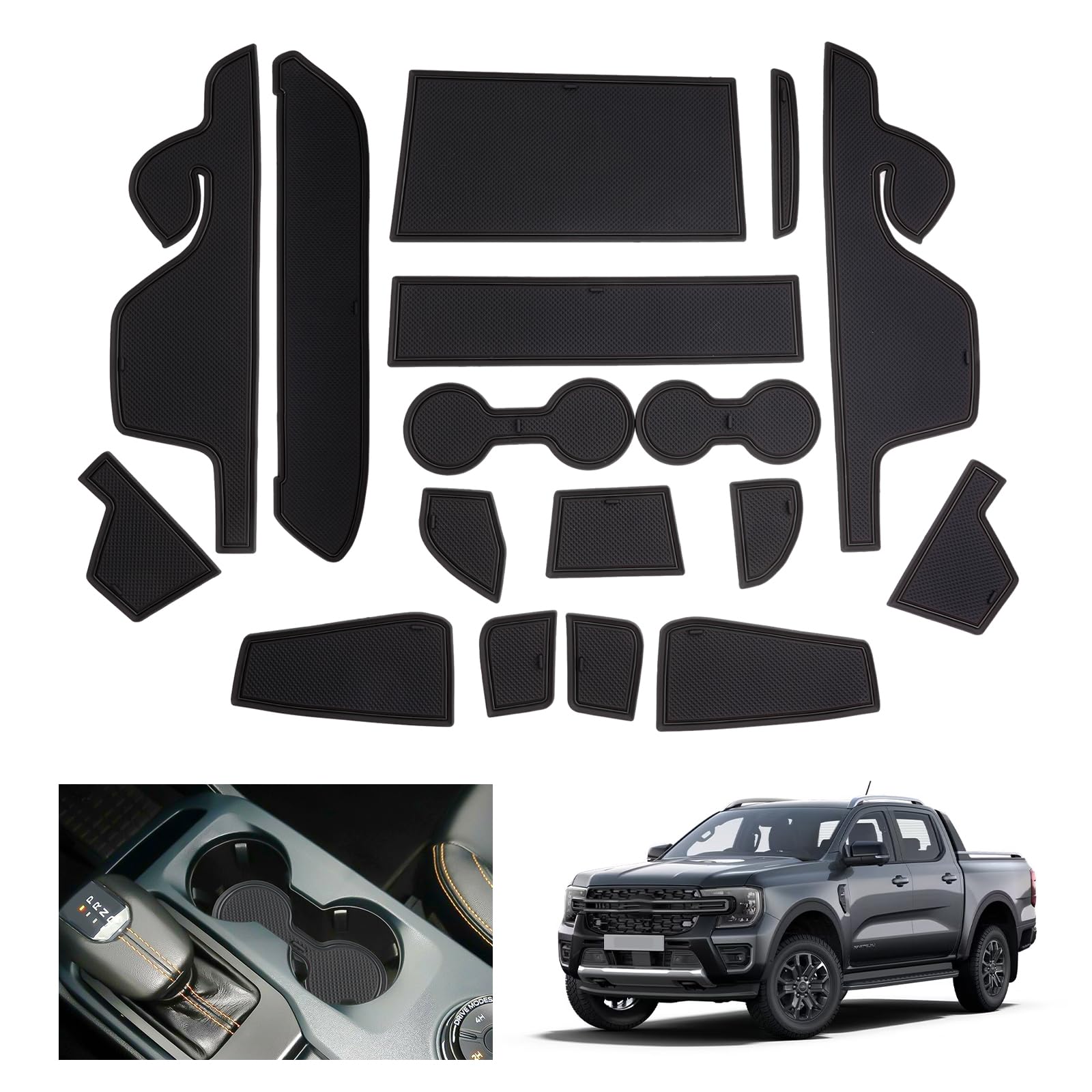 GAFAT Kompatibel mit Neu Ford Ranger T9 2023 2024 2025 (Elektronische Bremse) Antirutschmatten, Ranger Raptor Wildtrak Gummimatten Non-Slip, Mittelkonsole Türnaht, Ranger 2024 Zubehör (Schwarz)