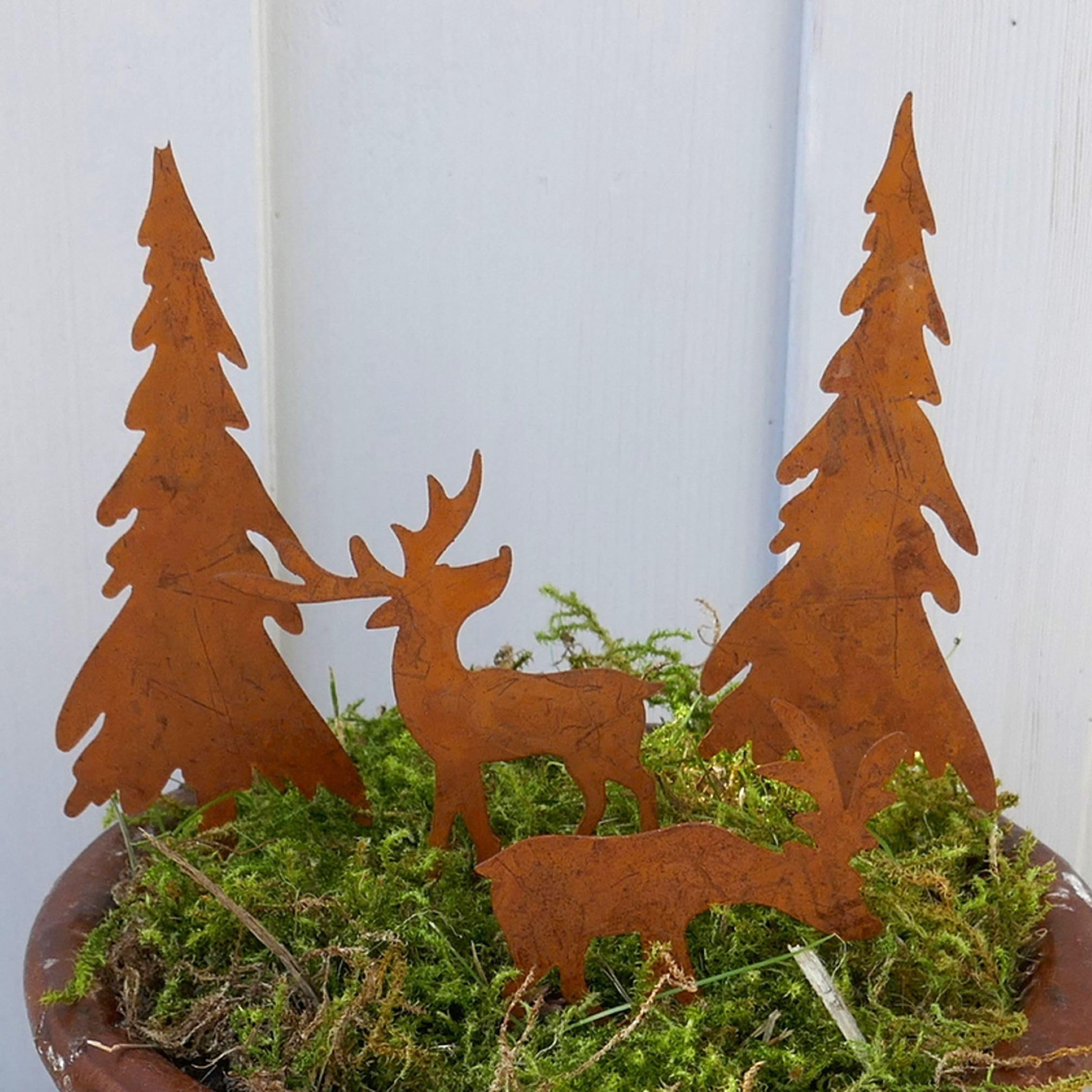 GARTENSTECKER WEIHNACHTEN: Ob als Aufmerksamkeit im Advent, als Weihnachtsgeschenk, Bastelspaß oder Geschenk für einen Jäger. Die Hirsch Deko Rost mit Tannen sorgt mit ihrem Aussehen für viel Freude