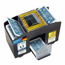 🕓 𝗠𝗜𝗦𝗖𝗛𝗘𝗡 𝗜𝗡 𝗦𝗘𝗞𝗨𝗡𝗗𝗘𝗡 - Mit dem Mischgerät ist das Kartenspiel innerhalb von Sekunden gemischt. Die Karten werden einfach in den beiden Fächern eingelegt und kommen in der Mitte gemischt heraus.