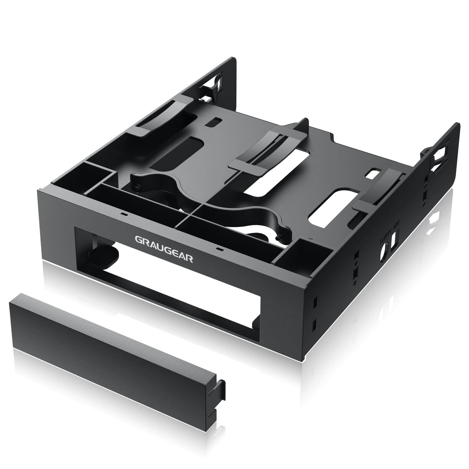 GRAUGEAR 5,25" Einbaurahmen für 2x2,5 Zoll SSD/HDD + 1x 3,5 Zoll Laufwerk, Anti-Vibrationsrahmen für PC Gehäuse Passend für 5,25 Zoll Schacht