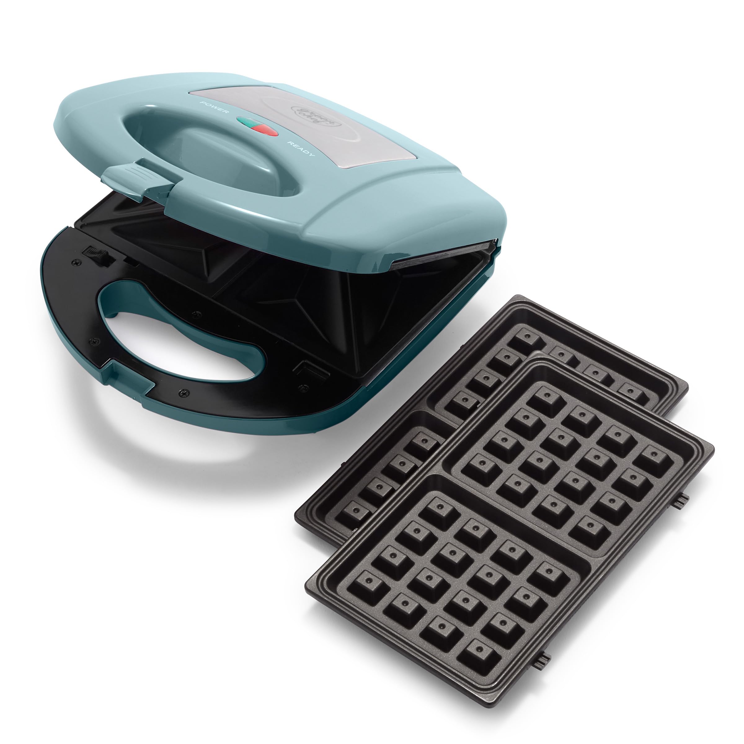 GreenChef Electric 3-in-1 Panini-,Waffel & Sandwichmaker,PFAS-freie Gesunde Keramik-Antihaft,Abnehmbare Spülmaschinenfest Grillplatten,Einfache Kontrollleuchte und Verschließbarer Deckel,Rauch Blau Schwarz