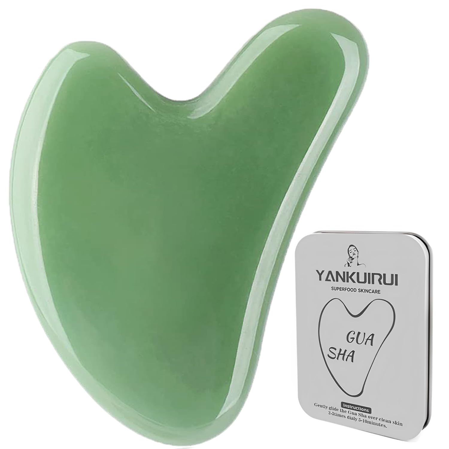 Der Gua Sha-Stein ist aus hochwertiger Jade gefertigt, die Mineralien enthält, die gut für die Schönheit und Gesundheit der Haut sind. Die Oberflächentextur ist superglatt, fühlt sich glatt an, ist langlebig, leicht zu pflegen, einfach zu benutzen und statikfrei.