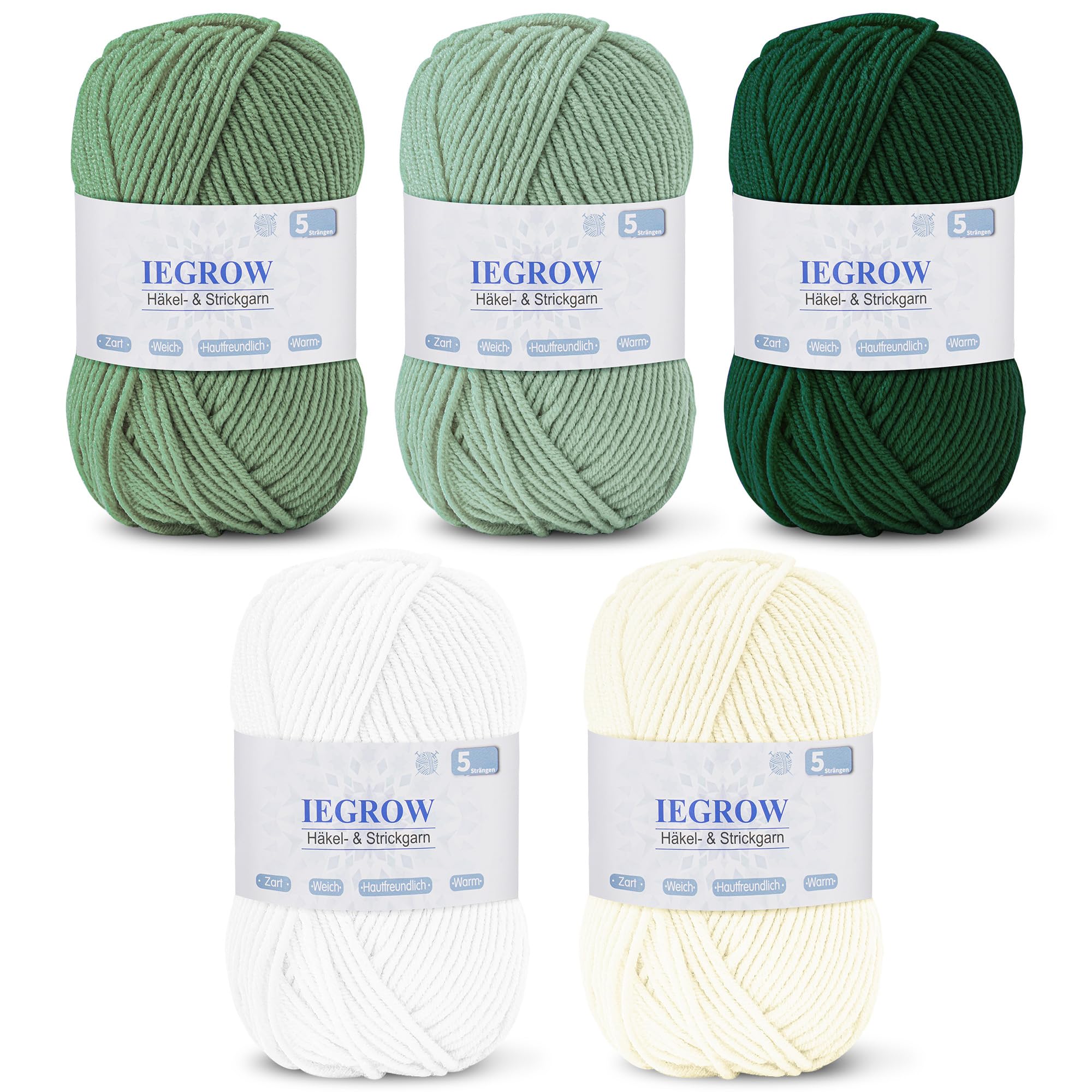 Mehrfarbiges Mischstrickgarn: Das Produkt enthält 5 Häkelgarne in verschiedenen Farben mit einem Gewicht von jeweils 50 g und einer Länge von etwa 100 Metern. Das Garn ist 5-fädig und ca. 2,5 mm dick. Es wird empfohlen, mit 4,0 – 6,0 mm zu häkeln.Unsere Wolle sind in mehr Farben erhältlich und bieten professionellere und umfassendere Rohstoffe für Ihr Handstricken.
