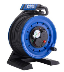 - Technische Details: Kabeltrommel-Ø 250 mm / 40 m Neopren-Gummi-Leitung H07RN-F 3G1,5 in schwarz / 3-fach Schutzkontakt-Steckdose 250 V mit integrierter Stecker-Dichtlippe / Thermoschutzschalter und HEDI Diagnosesystem DiagS
