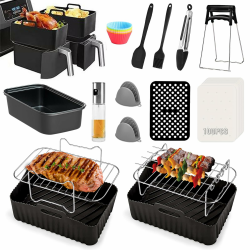 Heißluftfritteusen Zubehör für Ninja Foodi AF400EU, AF300EU, Emerio, Princess, Innsky, COSORI, Tower 7,6L/8L/9L/9,5L Dual Zone Heißluftfritteuse, Silikoneinlagen&Grillroste&Backformen usw, Schwarz 13pcs