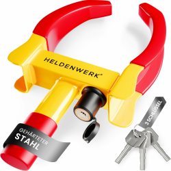 HELDENWERK Parkkralle inkl. Sicherheitsschloss & 3 Schlüsseln - Radkralle für Auto, Wohnwagen, Anhänger, Motorrad - PKW Reifenkralle, Autokralle, Rad-Kralle für 18-30cm Reifenbreite (Gelb/Rot)